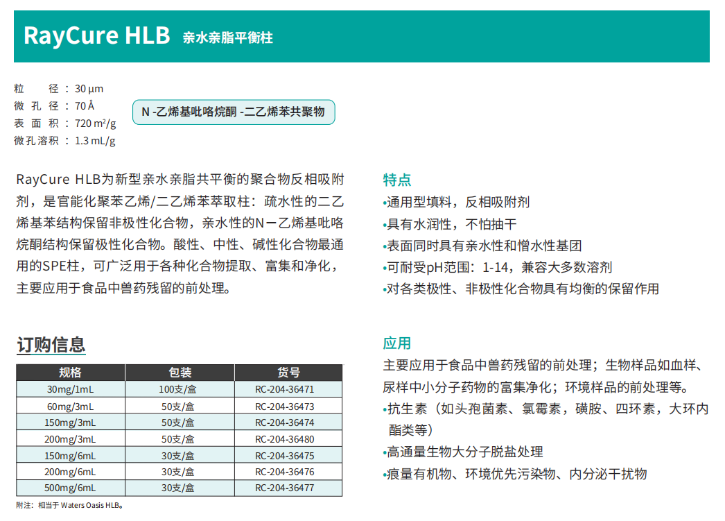 RayCure HLB 親水親脂平衡柱