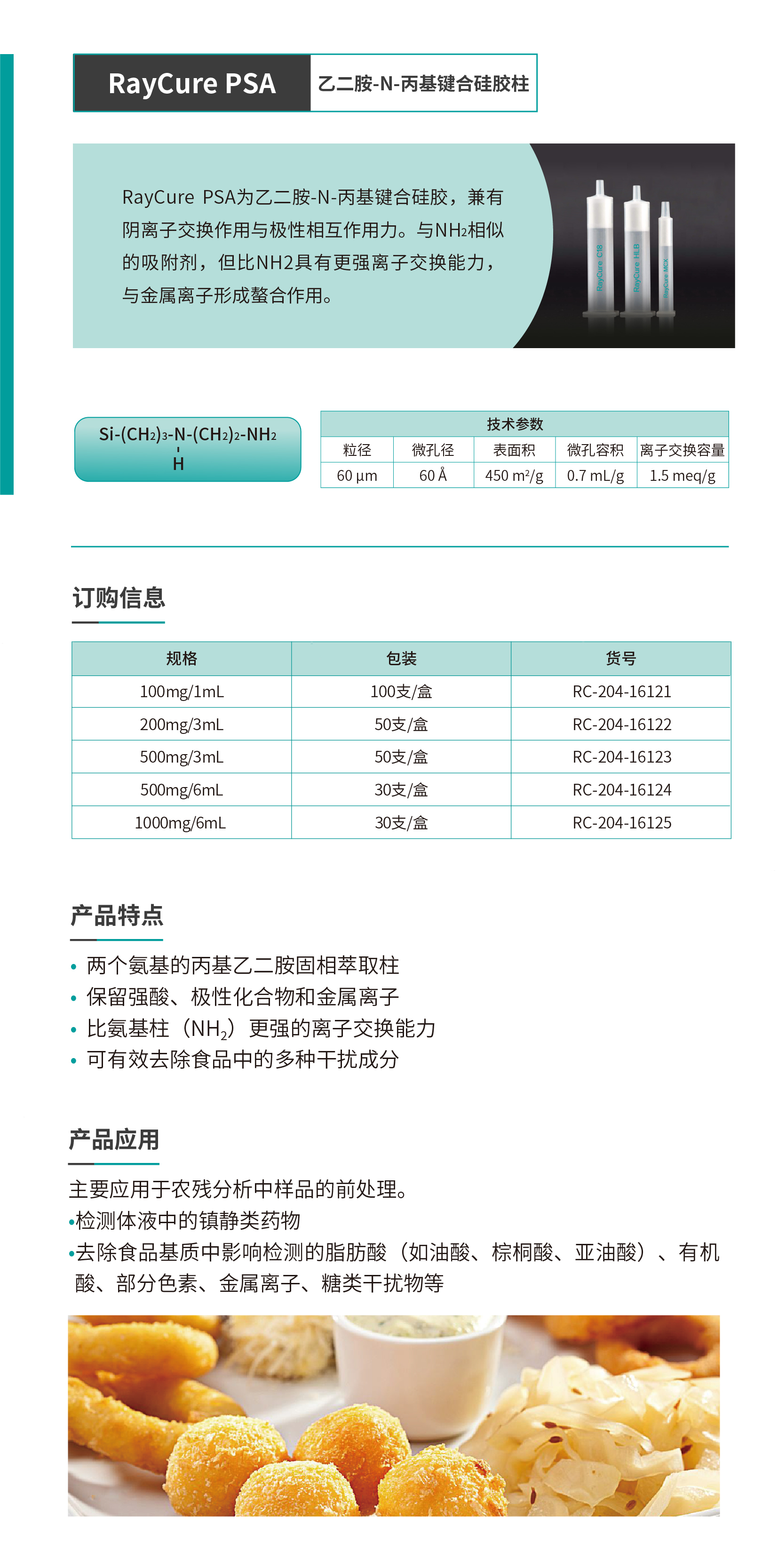RayCure PSA 乙二胺-N-丙基鍵合硅膠柱