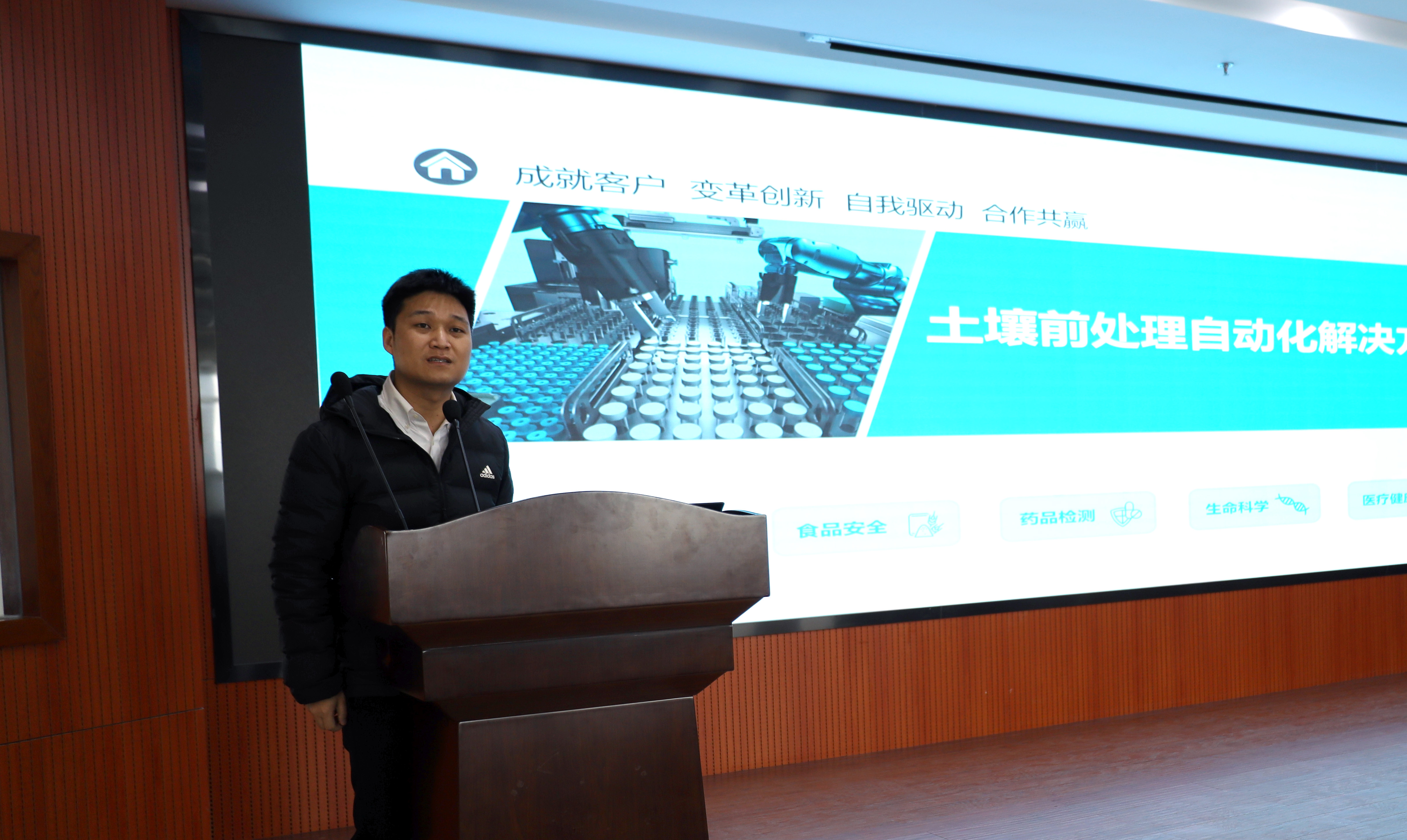 睿科集團應用工程師葉維鵬分享題為《水質有機物檢測解決方案》、《土壤前處理自動化解決方案》主題報告,從行業標準、檢測原理、配套設備、應用案例、操作注意事項、提高回收率的條件等方面分享了滿滿干貨。